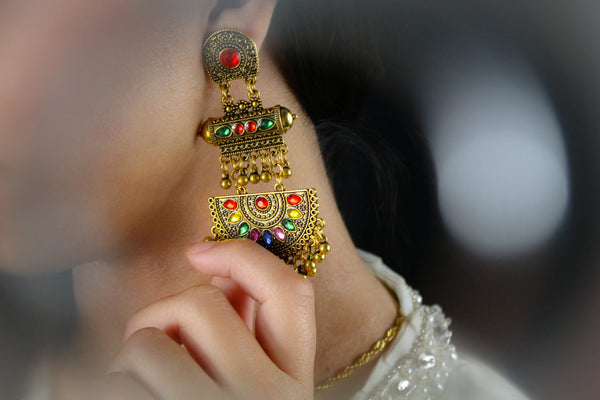 Discover the allure of traditional craftsmanship with our exquisite Afghani Golden Jumkas. These stunning earrings embody the rich cultural heritage of Afghanistan, featuring intricate designs and a warm gold finish that radiates elegance and sophistication. Perfect for festive occasions or to elevate your everyday style, these jumkas are a must-have accessory for anyone who appreciates unique, artisanal jewelry.