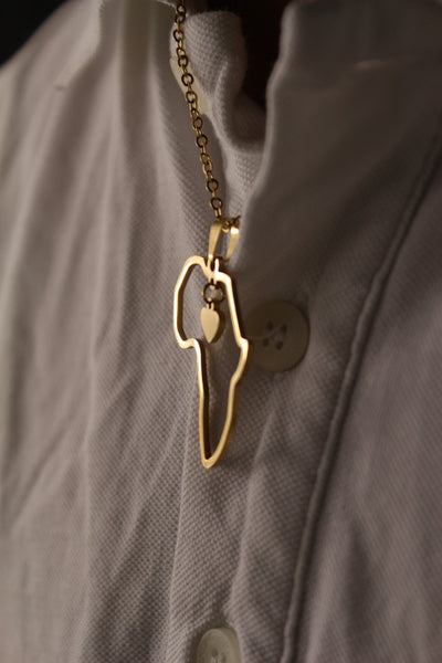 The Heart of Africa Necklace is a beautifully crafted piece designed to celebrate heritage, identity, and love for the continent. Made with precision and plated in luxurious 18K gold, this necklace features an elegant outline of Africa paired with a small dangling heart charm—symbolizing connection, pride, and deep-rooted affection.